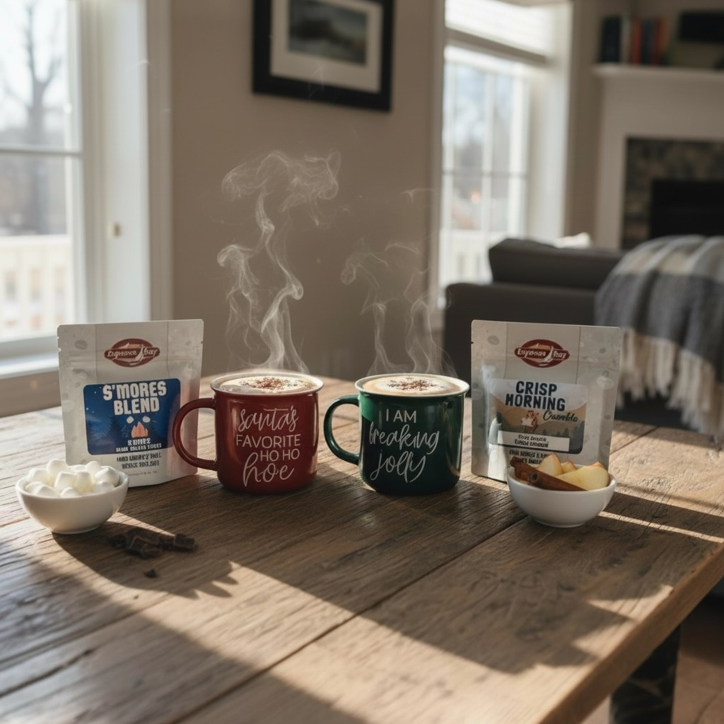 The mugs make you smile. The coffee makes everything else tolerable. Holiday season solved.