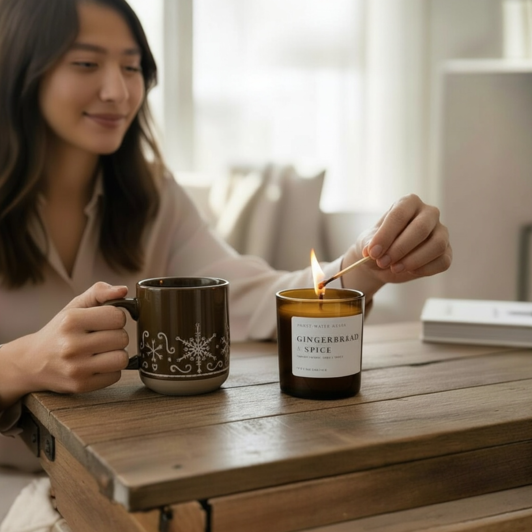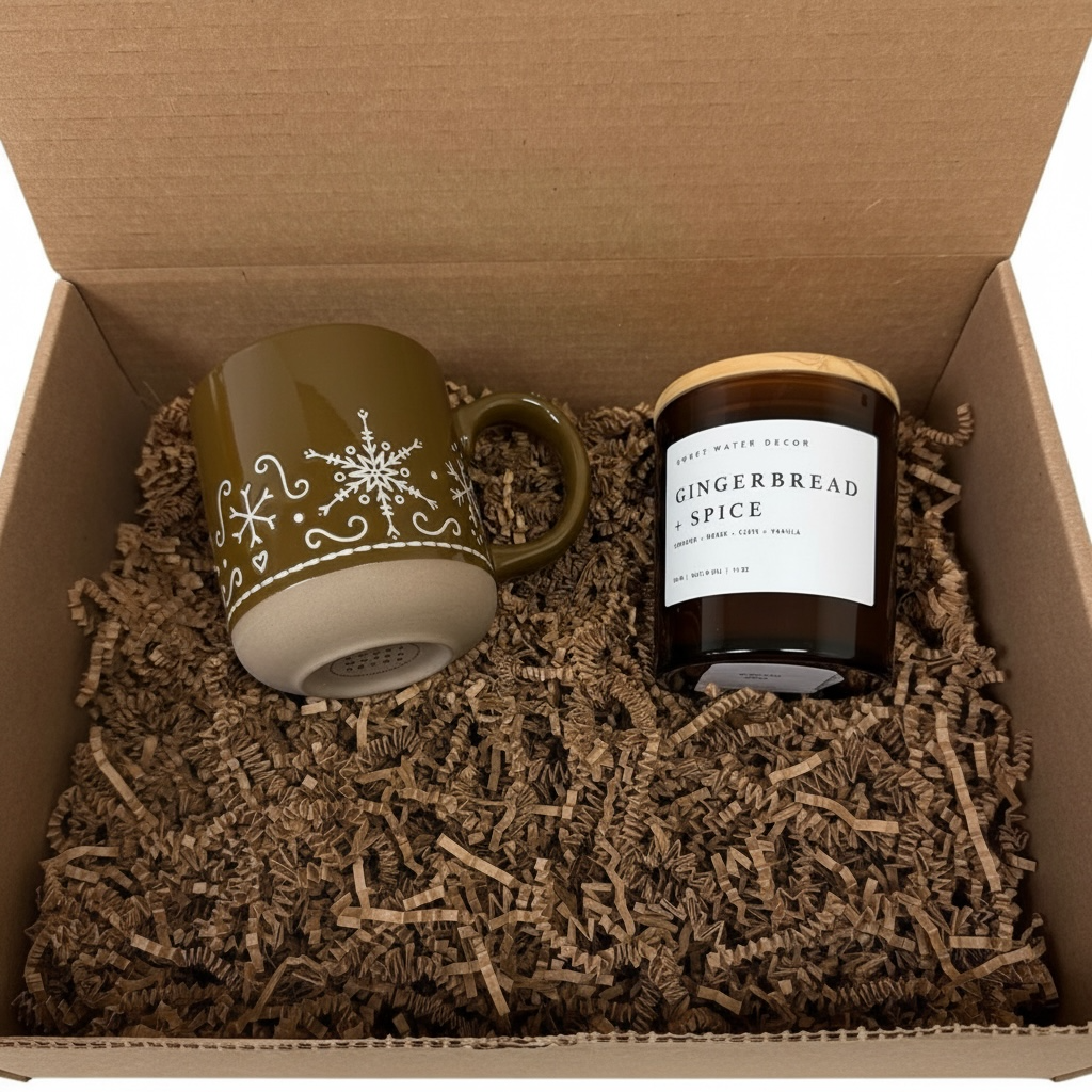 This is the set for quiet mornings with coffee, evening hot cocoa by the fire, or anytime you need a little moment to yourself. Light the candle, fill the mug, and pretend the rest of your to-do list does not exist for a few minutes.