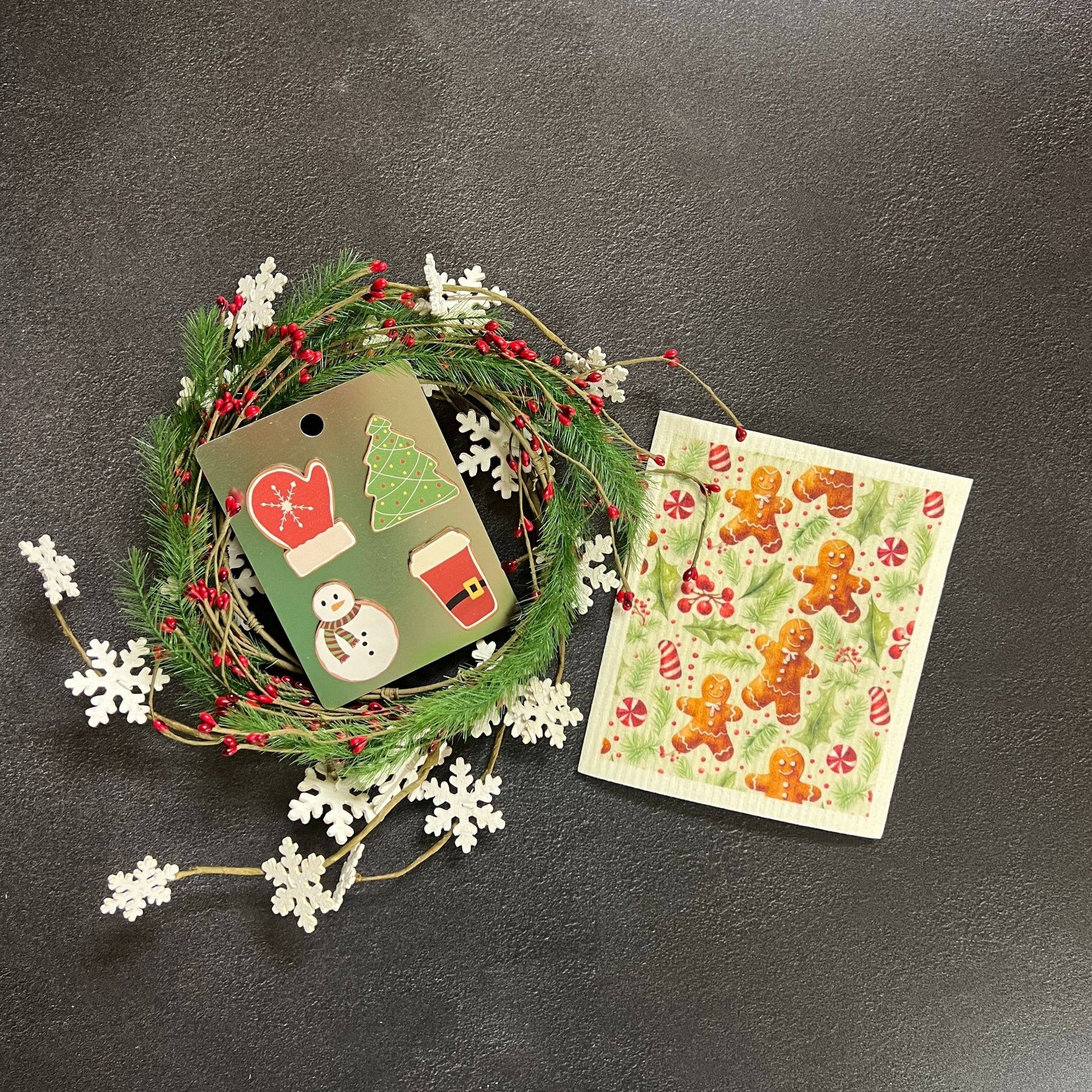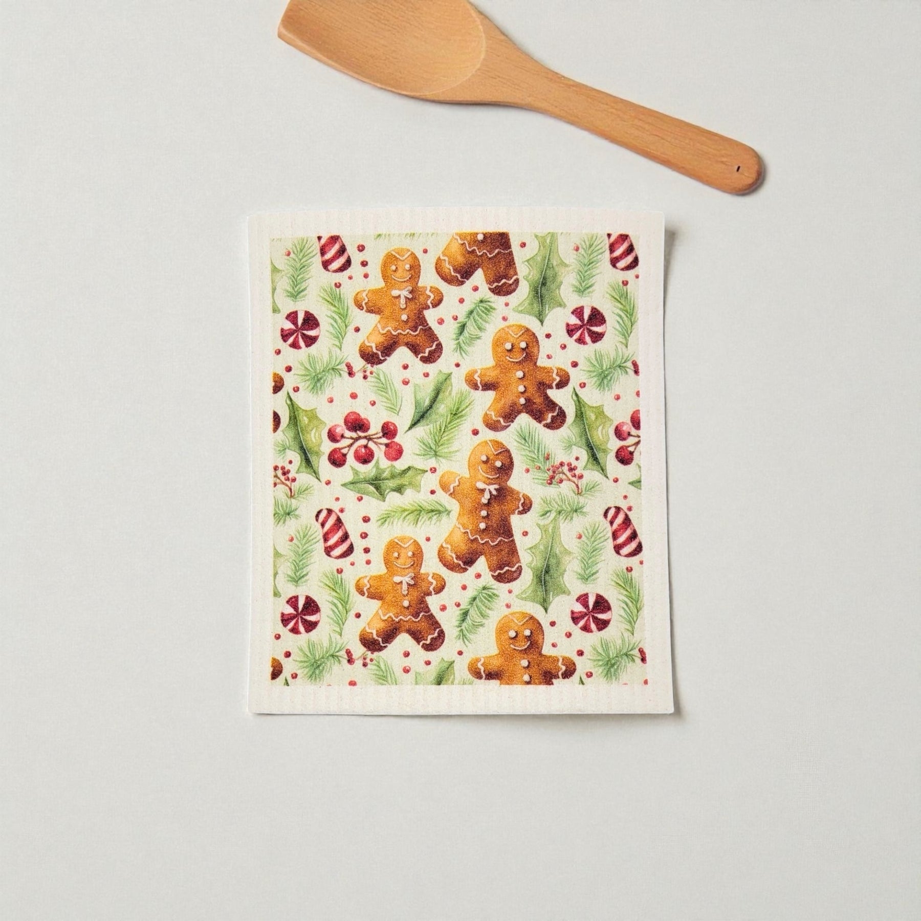 Gingerbread Cookie Swedish Dish Cloth - Reusable Kitchen Towel - Holiday Cleaning Cloth