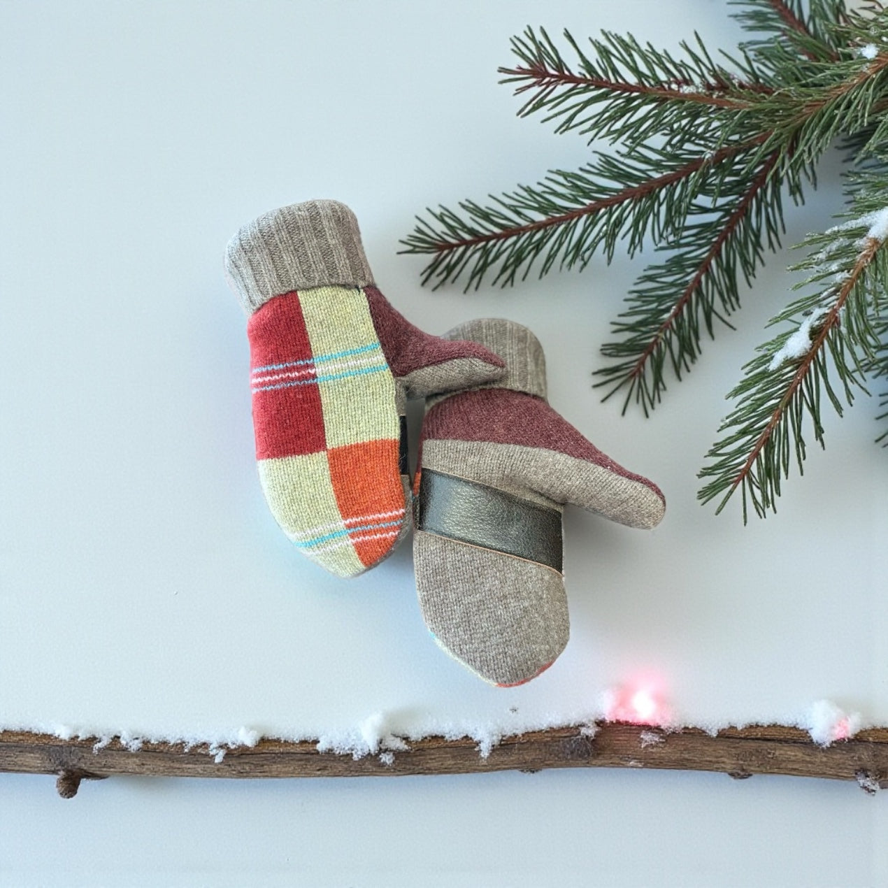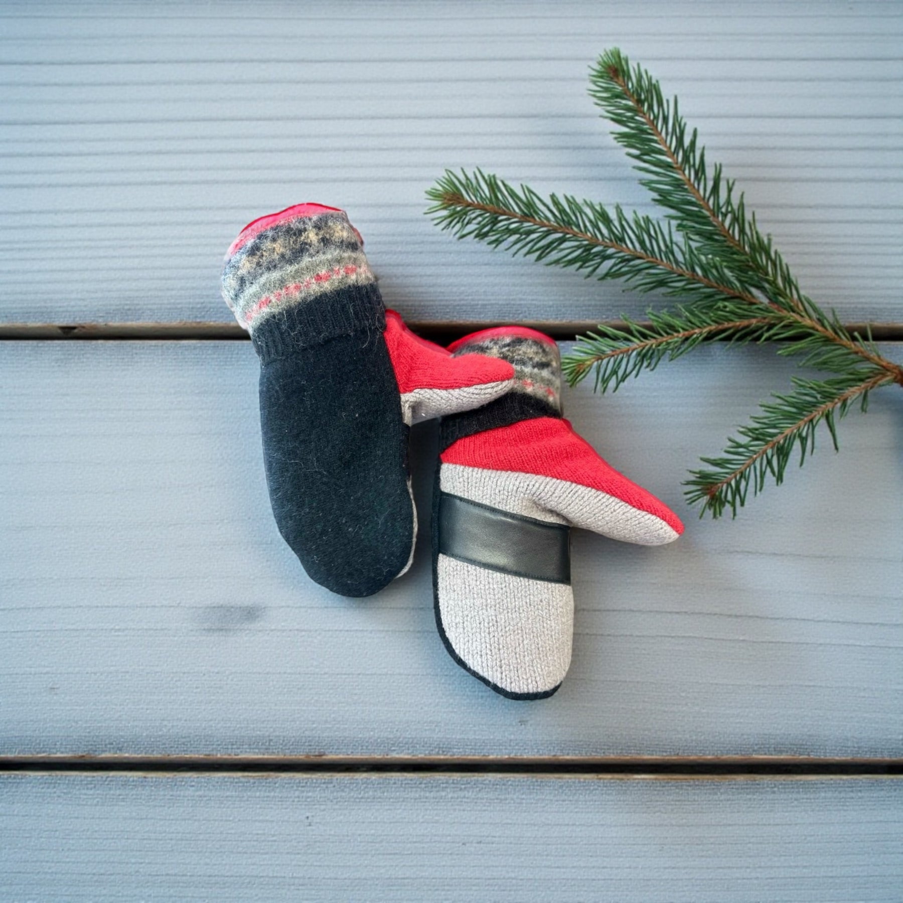 Vintage Sweater Mittens - Handmade Winter Mittens with Leather Palm - One-of-a-Kind