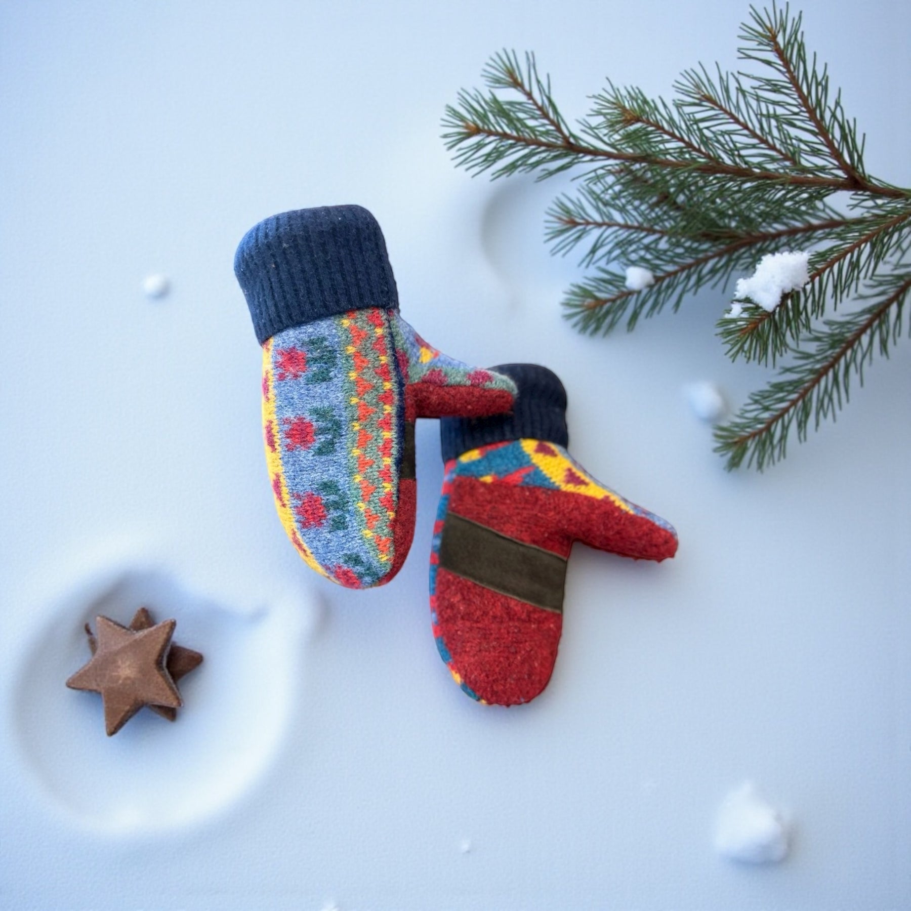 Because they are made from vintage sweaters, each pair is completely unique. The colors, patterns, and textures tell their own story - you are not just buying mittens, you are getting one-of-a-kind sustainable fashion that gives beautiful old materials new life.